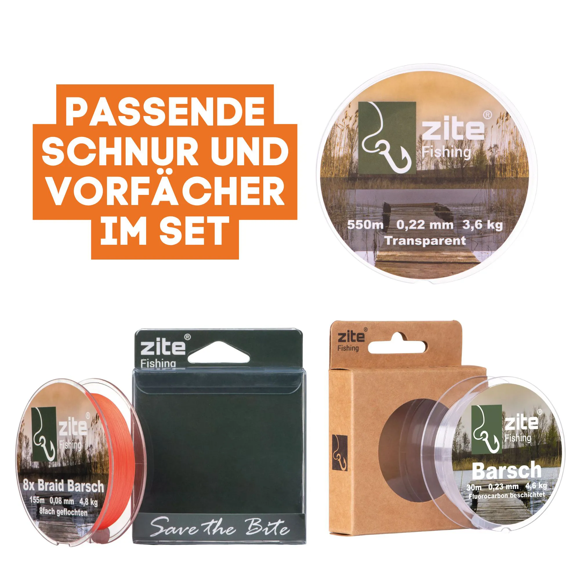 Dieses Komplettset bietet alles, was für ein erfolgreiches und direkt einsatzbereites Barschangeln notwendig ist – von hochwertiger Rute und Rolle über zwei Schnuroptionen bis hin zu praktischen Gratis-Beigaben. Eine durchdachte Zusammenstellung für alle, die Wert auf Qualität, Vielseitigkeit und sofortigen Einsatz am Wasser legen.
