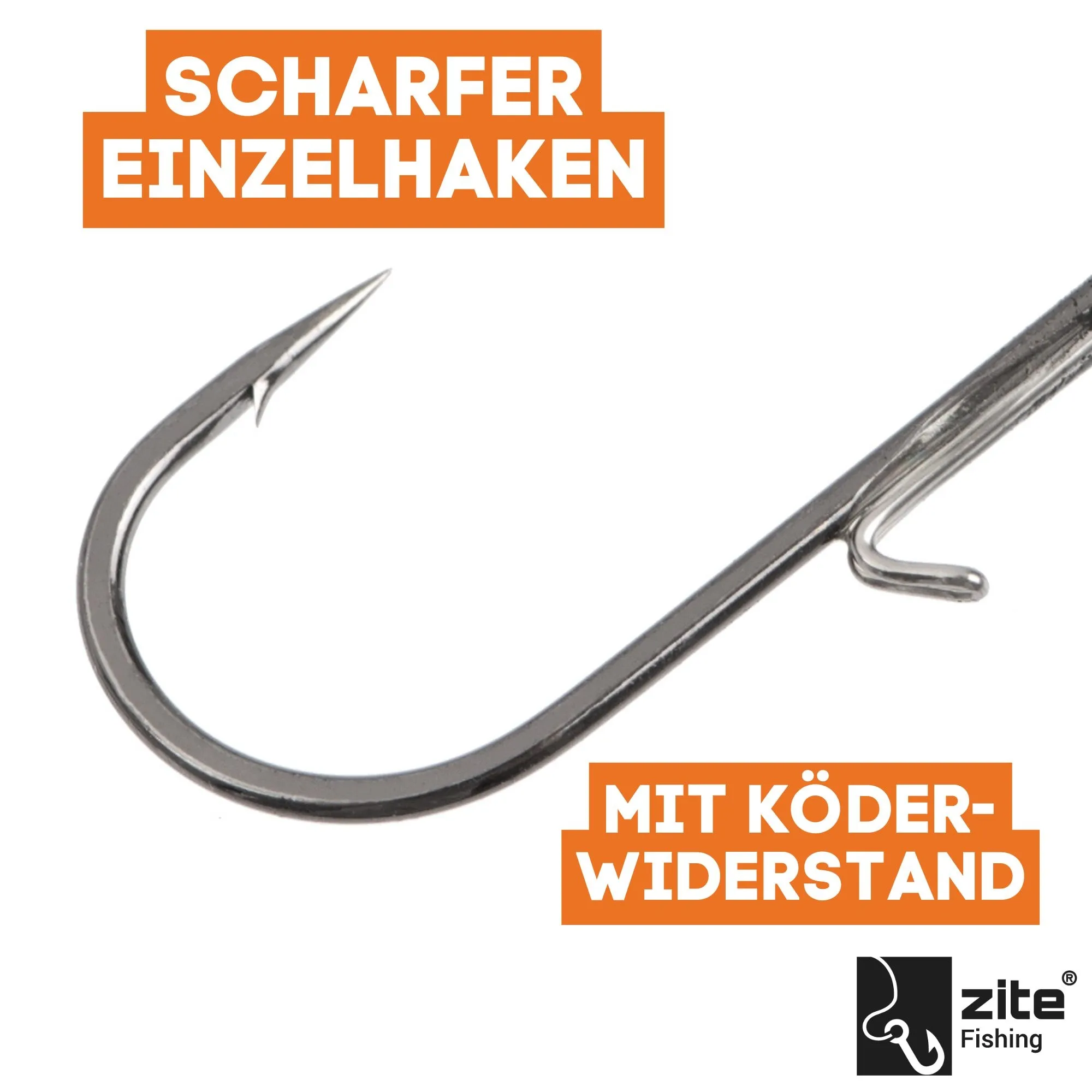 Dieses Ned Rig Bundle ist auf das feine Grundangeln mit kompakten Softbaits ausgelegt und kombiniert dafür passende Stand-Up Jigs, zuverlässige Verbindungen und zwei Vorfachstärken für Barsch- und Zander-Setups. Charakteristisch für das Ned Rig ist die kontrollierte Präsentation dicht am Grund, bei der der Köder im Stand-Up-Design aufgerichtet angeboten wird und so länger im Sichtfeld der Räuber bleibt.