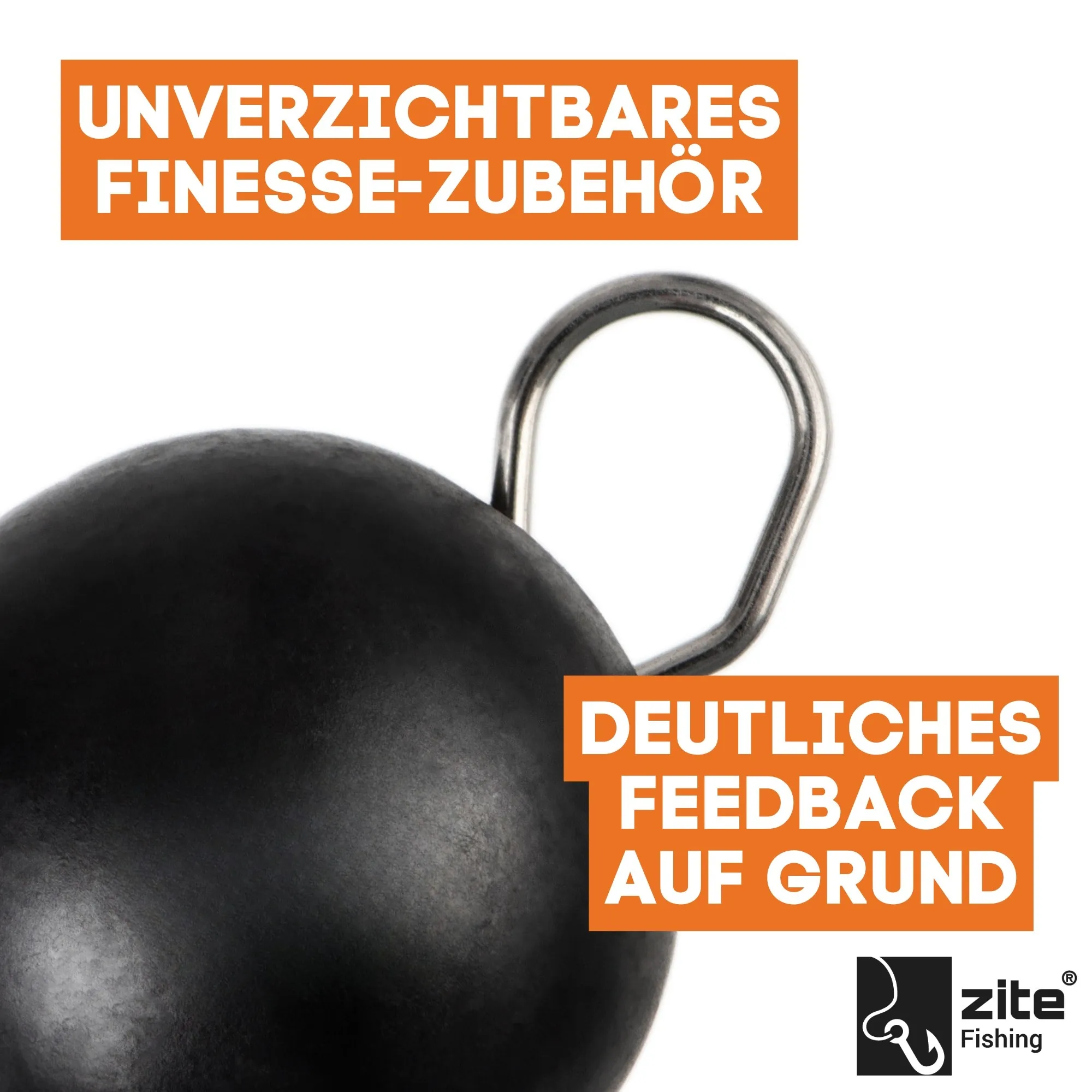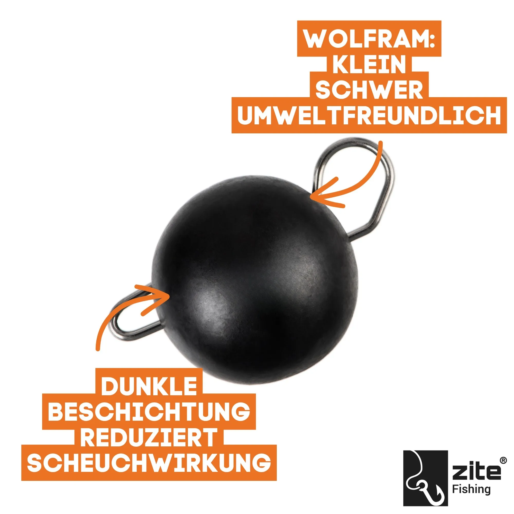 Im Bundle sind Cheburashka-Bleie mit 12 g (5 Stück) enthalten, ergänzt durch Tungsten Cheburashkas mit 7 g (2 Stück). Die Tungsten-Gewichte sind mattschwarz beschichtet, kompakt gebaut und liefern eine sehr direkte Rückmeldung bei Bodenkontakt. Das unterstützt eine kontrollierte Führung, wenn präzise Kontaktaufnahme zum Untergrund gefragt ist. Ein schneller Köderwechsel ist möglich, ohne den Haken entfernen zu müssen.