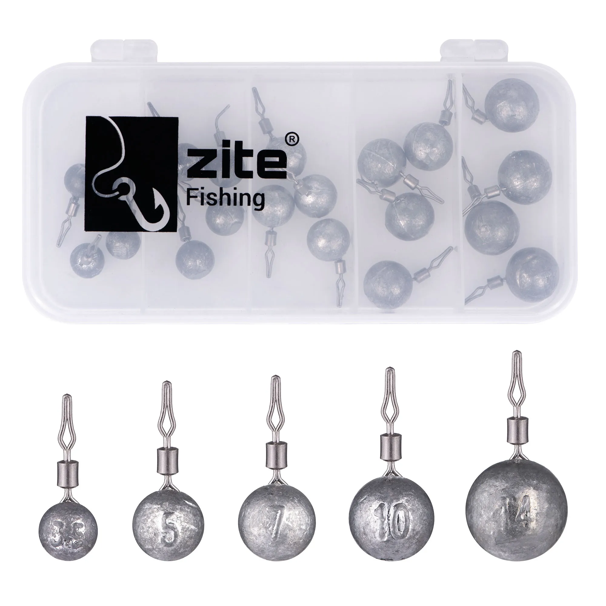 Das Drop Shot Blei Sortiment von Zite Fishing umfasst fünf verschiedene Gewichte, nämlich 3,5g, 5g, 7g, 10g und 14g. Mit dieser breiten Auswahl an Gewichten ist der Angler bestens für den nächsten Angelausflug ausgestattet.