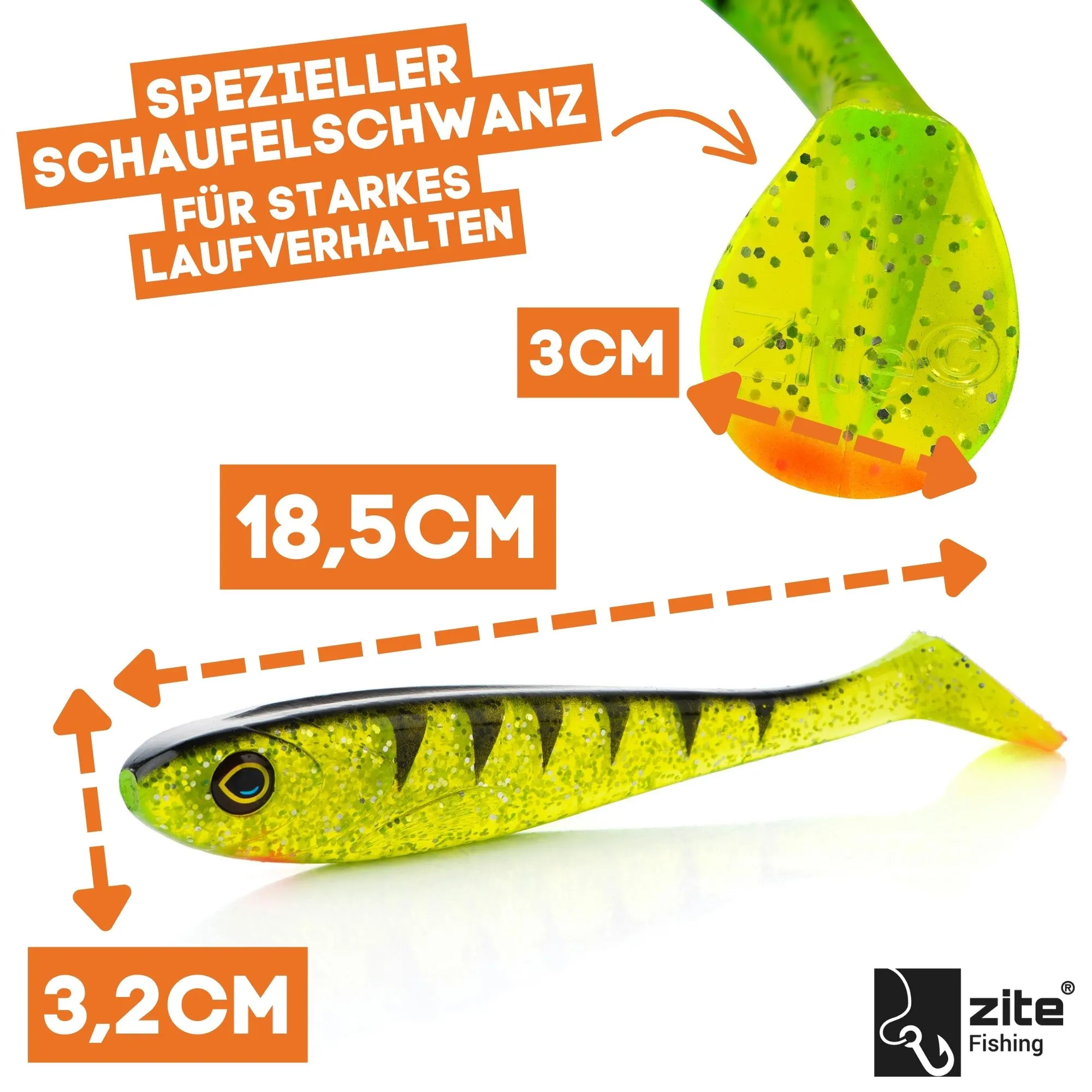 Dieser 18,5 cm lange Gummiköder mit einer robusten Gummimischung wurde speziell entwickelt, um große Raubfische wie Hechte erfolgreich anzulocken.
