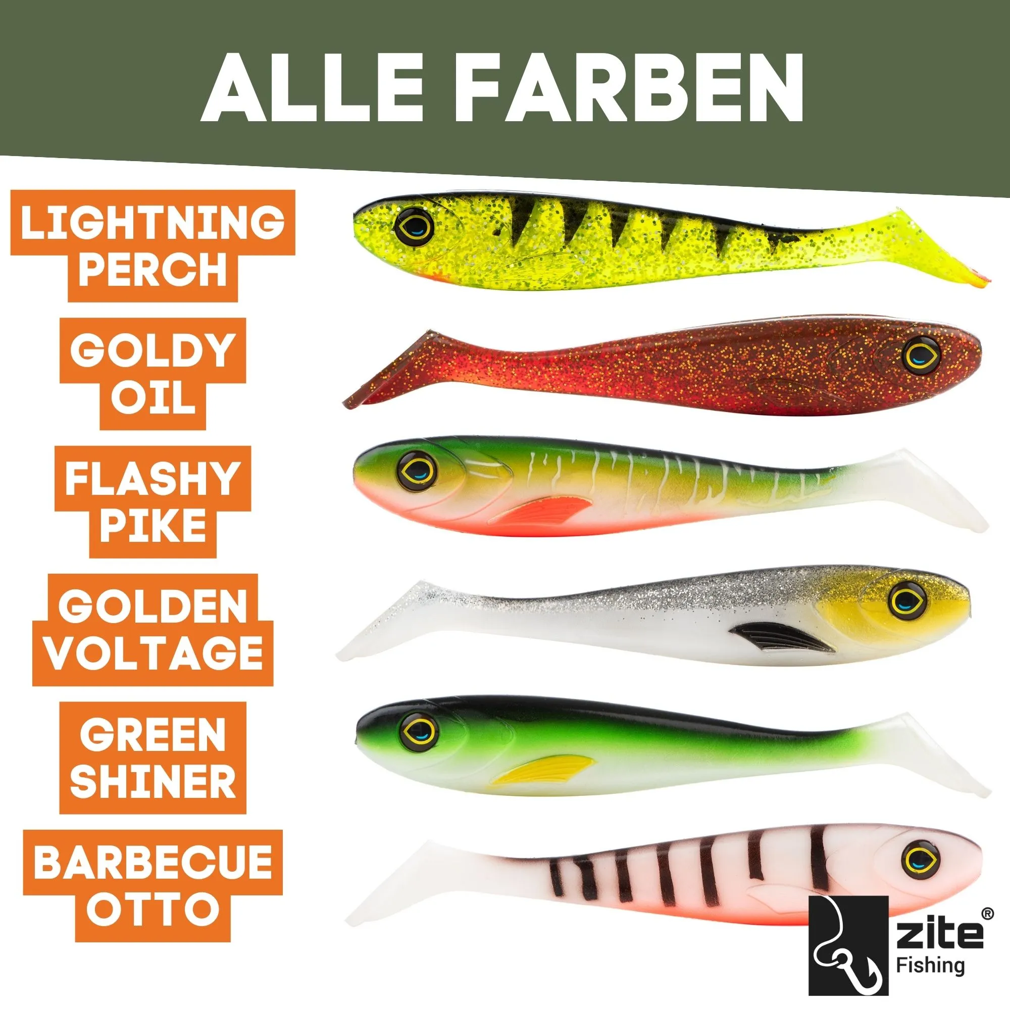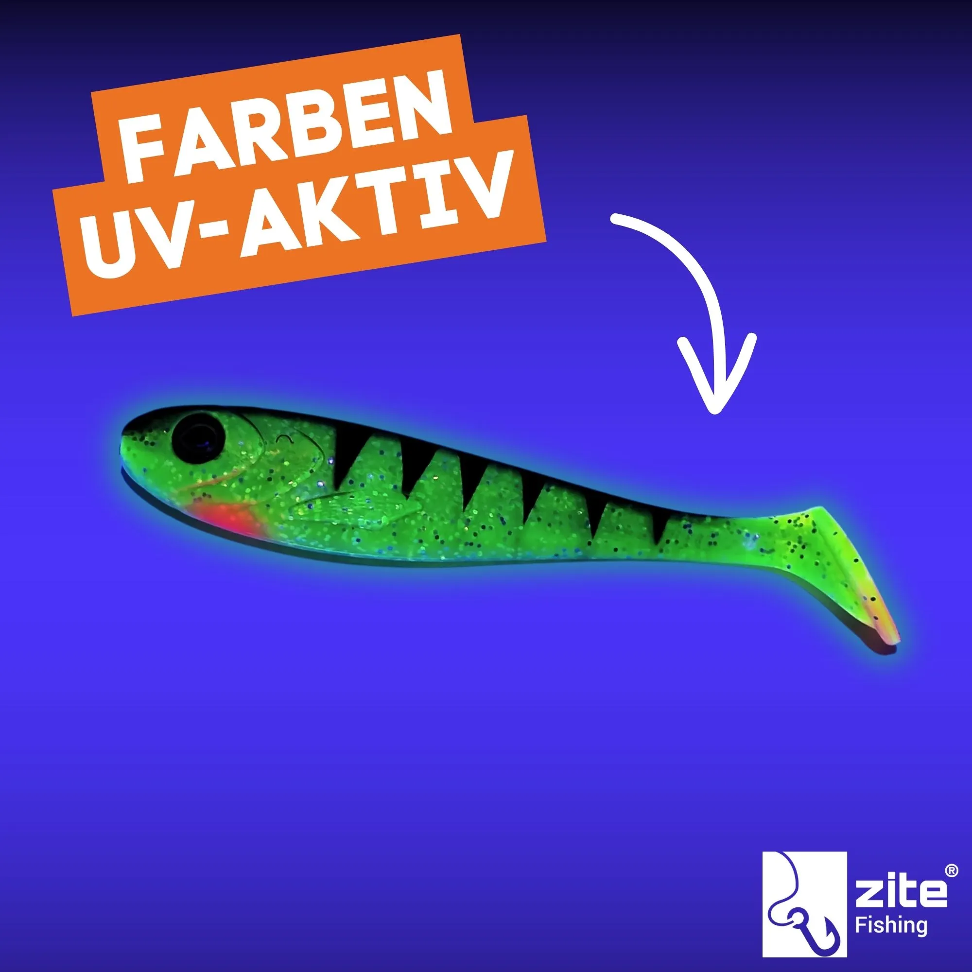 Sechs lebhafte Farbvarianten wie Flashy Pike und Lightning Perch stehen zur Auswahl. Vier dieser Varianten enthalten UV-aktive Elemente, die im Wasser besonders auffällig sind.