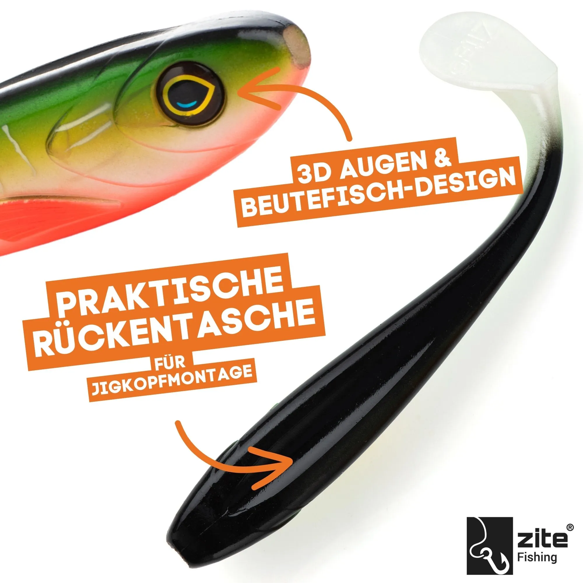 Das praxisnahe Köderpaket besteht aus dem Hecht-Gummifisch-System Aktiv, das durch seine UV-Aktivität und robuste Bauweise große Reizwirkung entfaltet, sowie den Inzite Flanker Gummifischen in der Variante „Flashy Pike“. Diese Shads punkten mit einer flankenden Aktion, detailreicher Optik und auffälligem Dekor, das selbst vorsichtige Hechte zuverlässig zum Anbiss verführt.