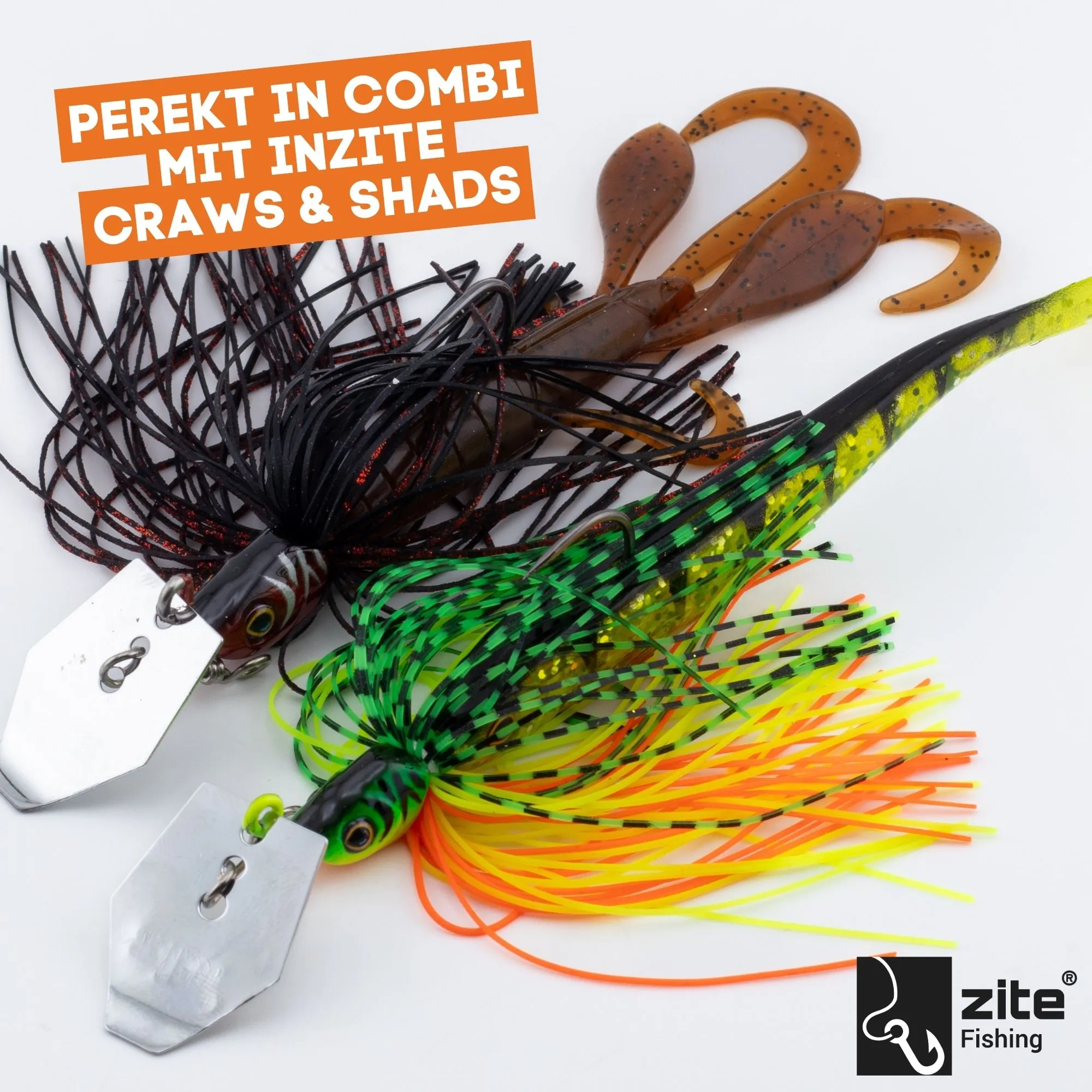 Ausgeführt in 10 g mit Hakengröße 5/0 passt dieser Köder besonders für flachere Zonen und eine aktive, kontrollierte Führung. Ergänzend stehen die Gewichtsklassen 16 g und 21 g zur Verfügung, um je nach Tiefe, Strömung oder Distanz eine passende Gewichtung zu wählen. Der Inzite Blader richtet sich an die Zielfische Barsch, Zander und Hecht und kann als Suchköder unterschiedliche Bereiche konsequent abfischen.