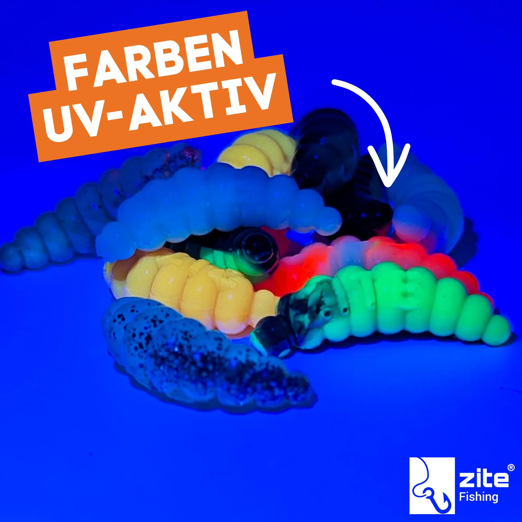 Einige Farben sind stark UV-aktiv und sorgen so für optimale Sichtbarkeit bei schwierigen Lichtverhältnissen und in trüben Gewässern. Ein zusätzlicher Lockreiz für mehr Erfolg.