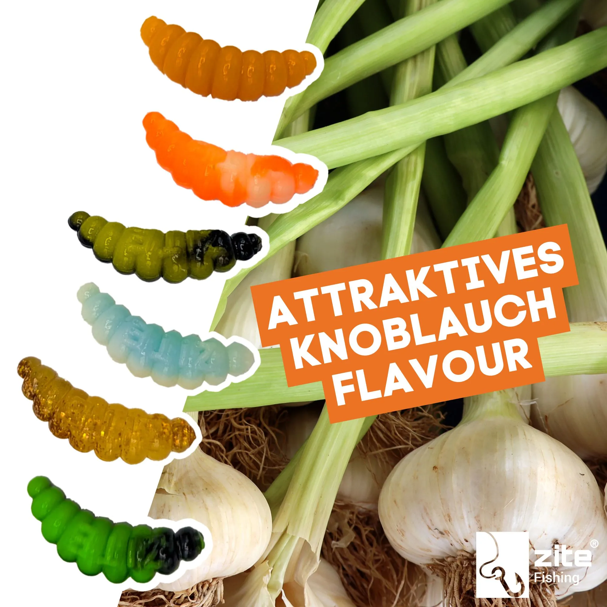 Mighty Mag Bienenmade Allround Mix Knoblauch Gummiköder Forelle 2,8 cm 12 Stück