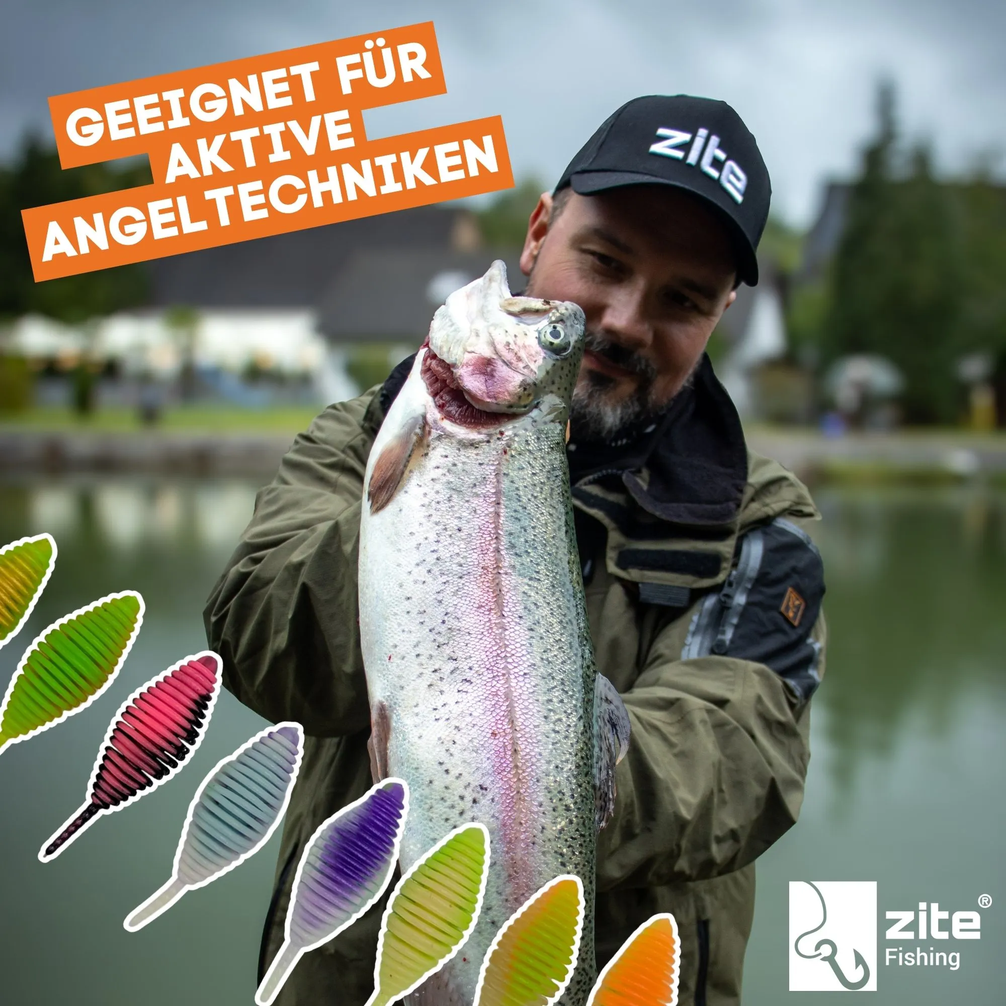 Mit 50 mm und 1,9 g schiebt der bullige, lamellierte Körper spürbar Wasser; der Pintail liefert feine Nachläufe, die den Großreiz sinnvoll abrunden. Die weiche, phthalatfreie SaboFlex-Mischung wird schnell eingesaugt und verbessert die Hakenlage; das Knoblauch-Aroma ergänzt die visuelle Dominanz um eine klare Duftlinie, die Fische zielsicher an den Köder führt.