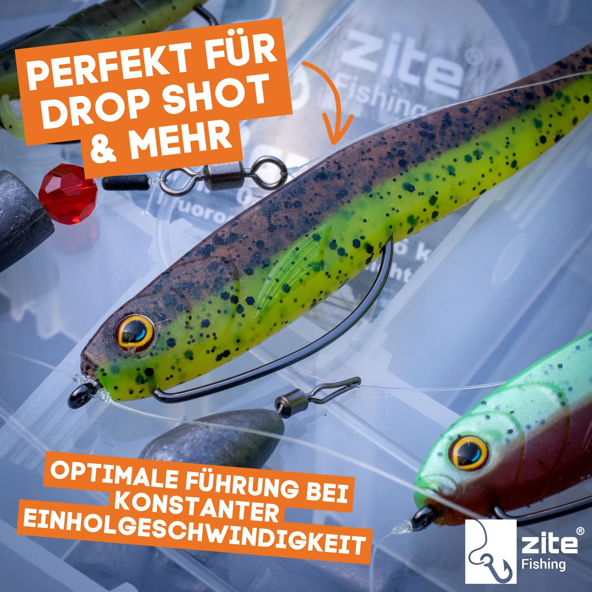 Passend zum Gummifisch-Sortiment sind robuste Jighaken im Lieferumfang enthalten. Diese lassen sich direkt montieren und ermöglichen eine sichere Präsentation der Köder – ideal für ein sofortiges Angeln ohne Zusatzkäufe.