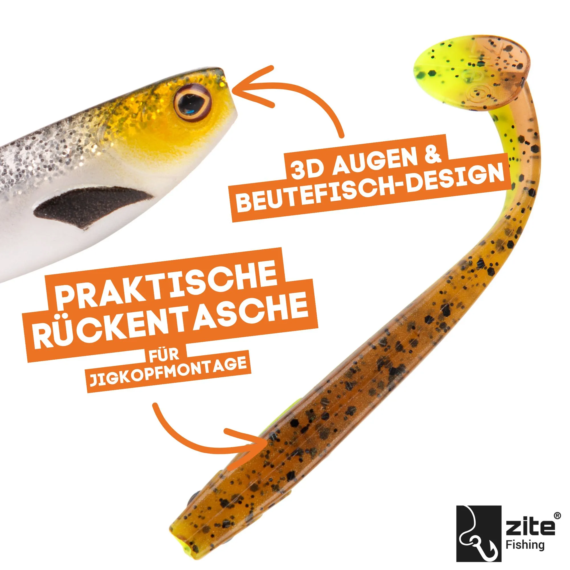 Gratis Gummifischset mit Jighaken – sofort einsatzbereit ohne Zusatzbedarf.