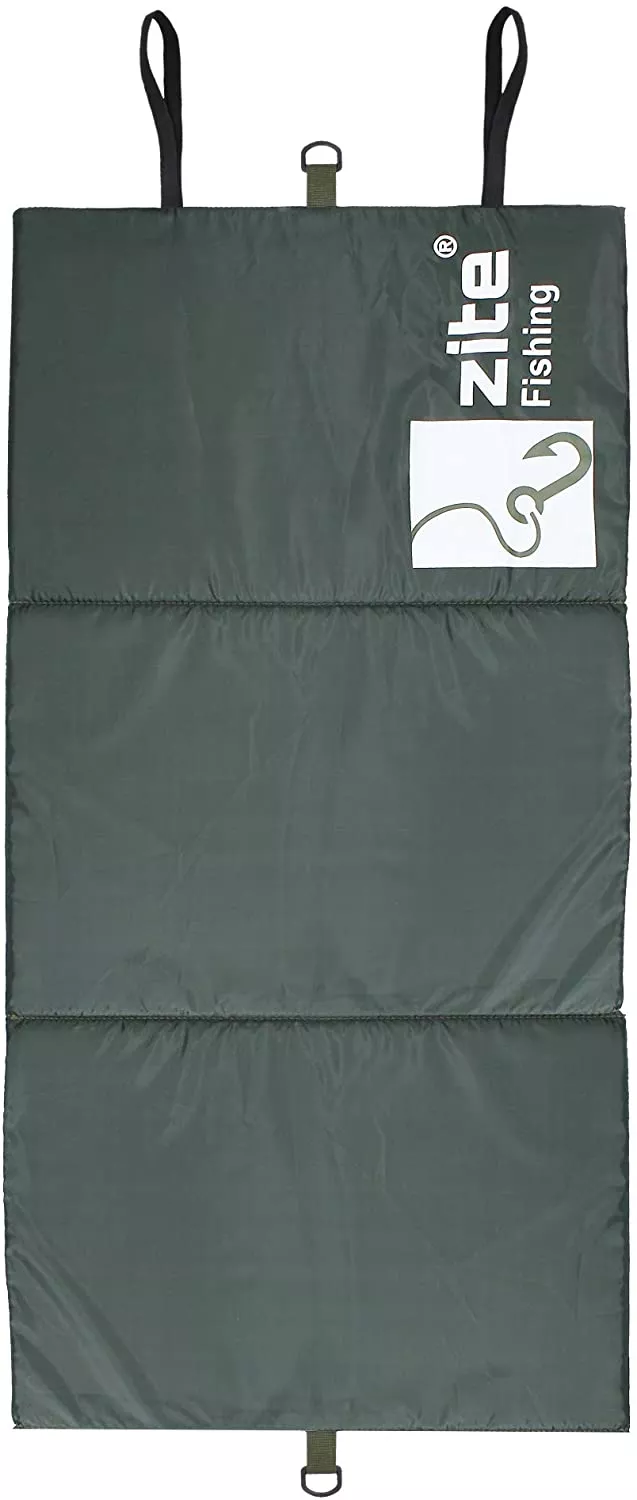 Karpfen-Angelset mit einer Federzugwaage bis 32kg zum Fische wiegen und vermessen sowie einer aufrollbaren Abhakmatte und einer Lösezange von Zite Fishing. Mit diesem Angelzubehör-Set lässt sich der Fang beim Angeln also direkt abhaken, wiegen und abmessen. Die Karpfenmatte hat die Maße 100 x 60 cm und ist praktischerweise für den Transport aufrollbar. Die Angelmatte ist mit 100 % Polyester 190T bezogen und lässt sich durch diese Oberfläche gut abwischen. Die Angelwaage verfügt über ein ausziehbares Maßband bis 1m.