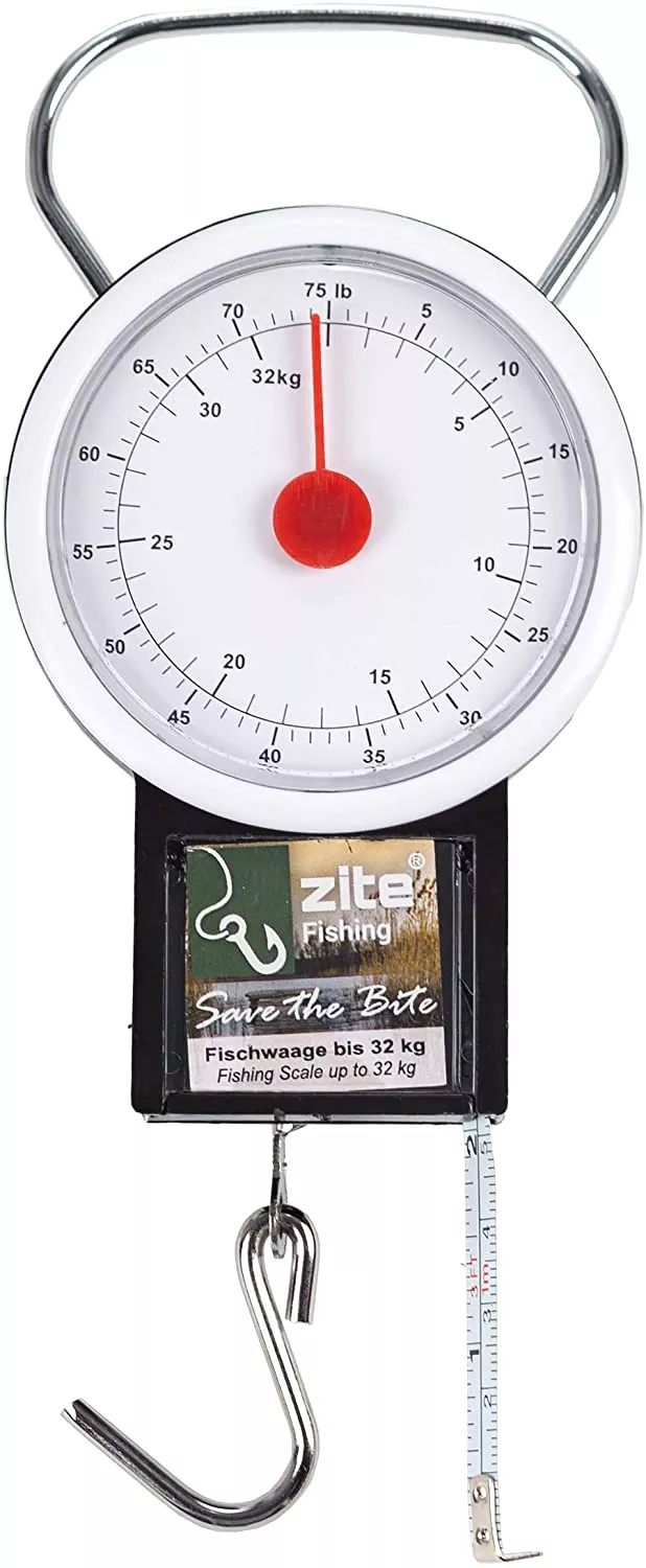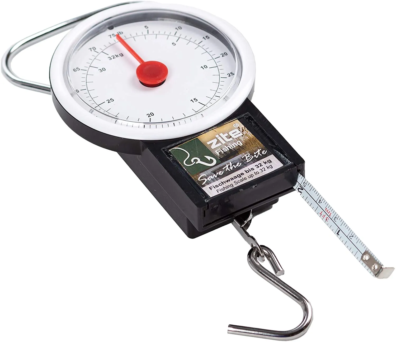 Mit der Federwaage kann man nicht nur Fische abwiegen, sondern auch Pakete oder Koffer, da sie bis zu 32kg aushält. Außerdem verfügt sie über ein integriertes Maßband, mit dem der nächste Fang dann auch direkt ausgemessen werden kann.