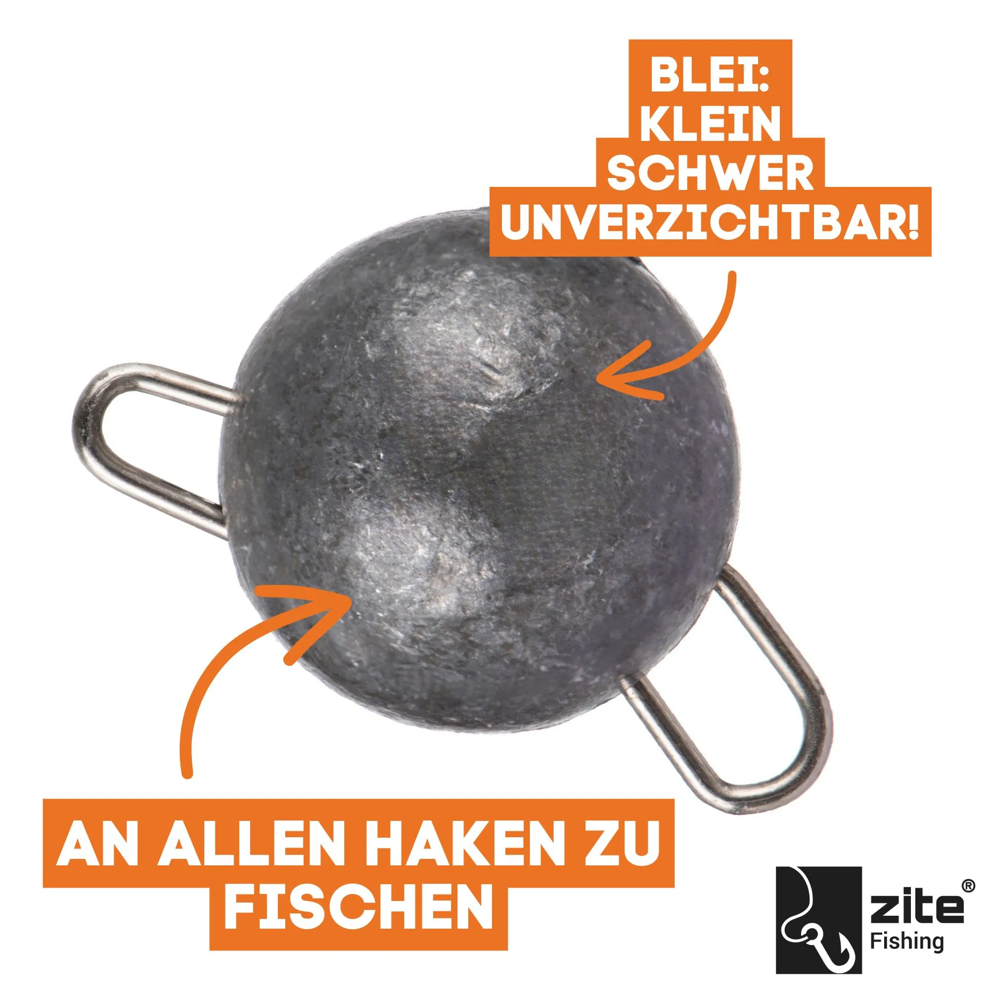 Besonderes Merkmal dieser speziellen Angel-Bleie ist die freie Verbindung zwischen Grund-Blei und dem Gummi-Köder beim Spinnfischen. Das sorgt für mehr Bewegung.
