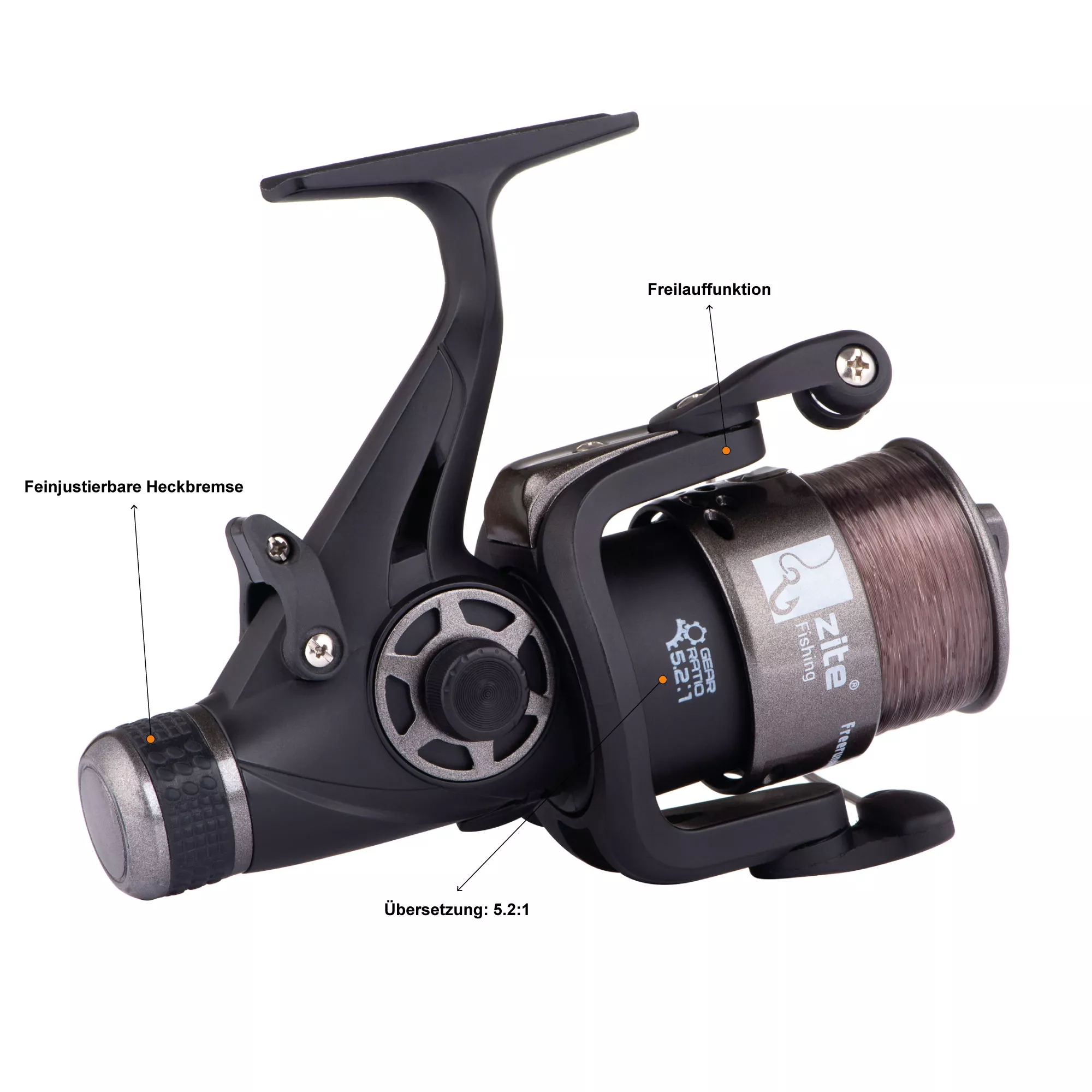 Die Freilaufrolle ist mit vielen Highlights ausgestattet, wie zum Beispiel mit einer feinjustierbaren Heckbremse, einem hochwertigem Stahlkugellager, einer 5,2:1 Übersetzung, Anti Twist-Schnurlaufröllchen uvm.