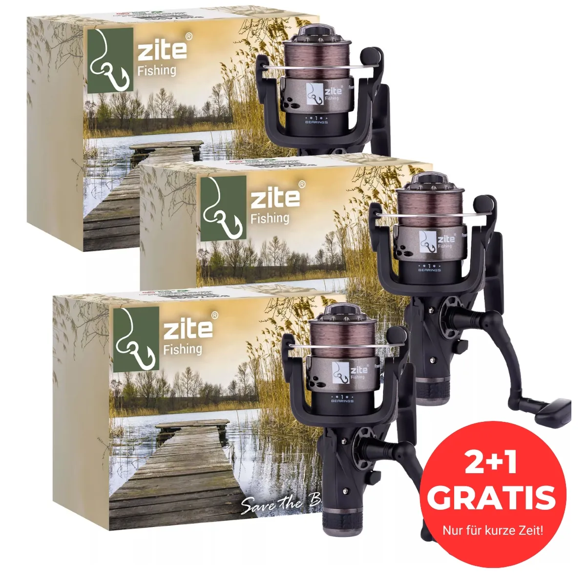 In diesem Zite Fishing Set ist die Freerunner Reel 4000 1BB drei Mal enthalten. Jede Angelrolle ist bereits mit einer 0,30 mm starken Monofilschnur bespult. Die Tragkraft beträgt 4,9 kg.