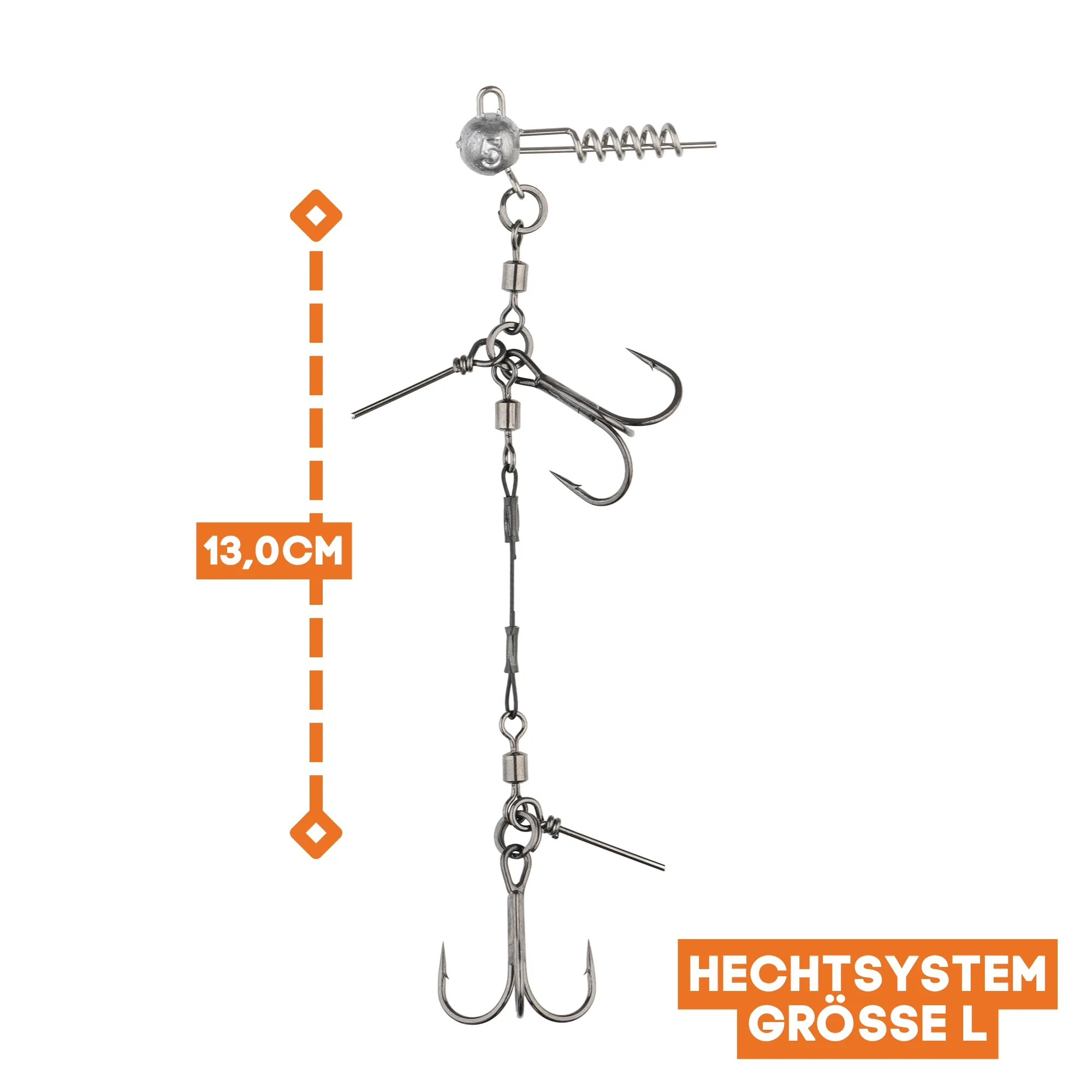 Für Softbaits von 21–26 cm konzipiert, bietet das System eine optimale Kombination aus Halt und realistischer Köderführung – perfekt für Spinn- und Schleppfischen auf Hecht.