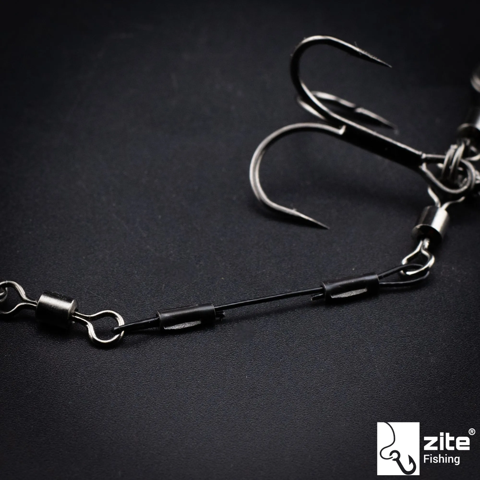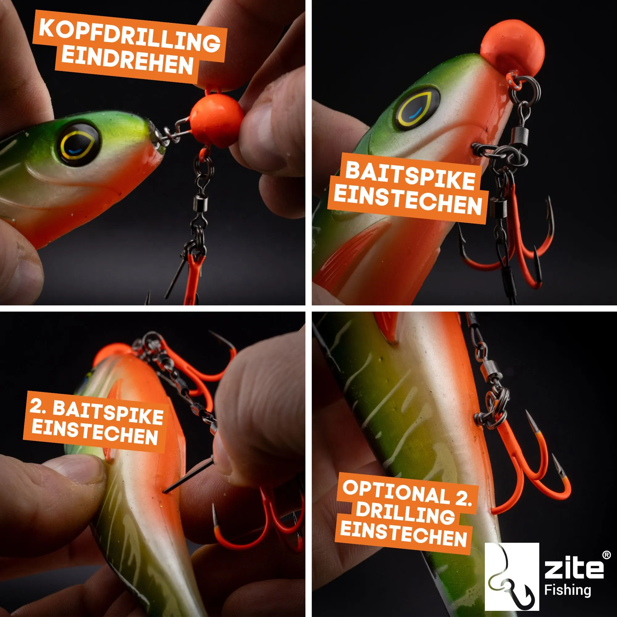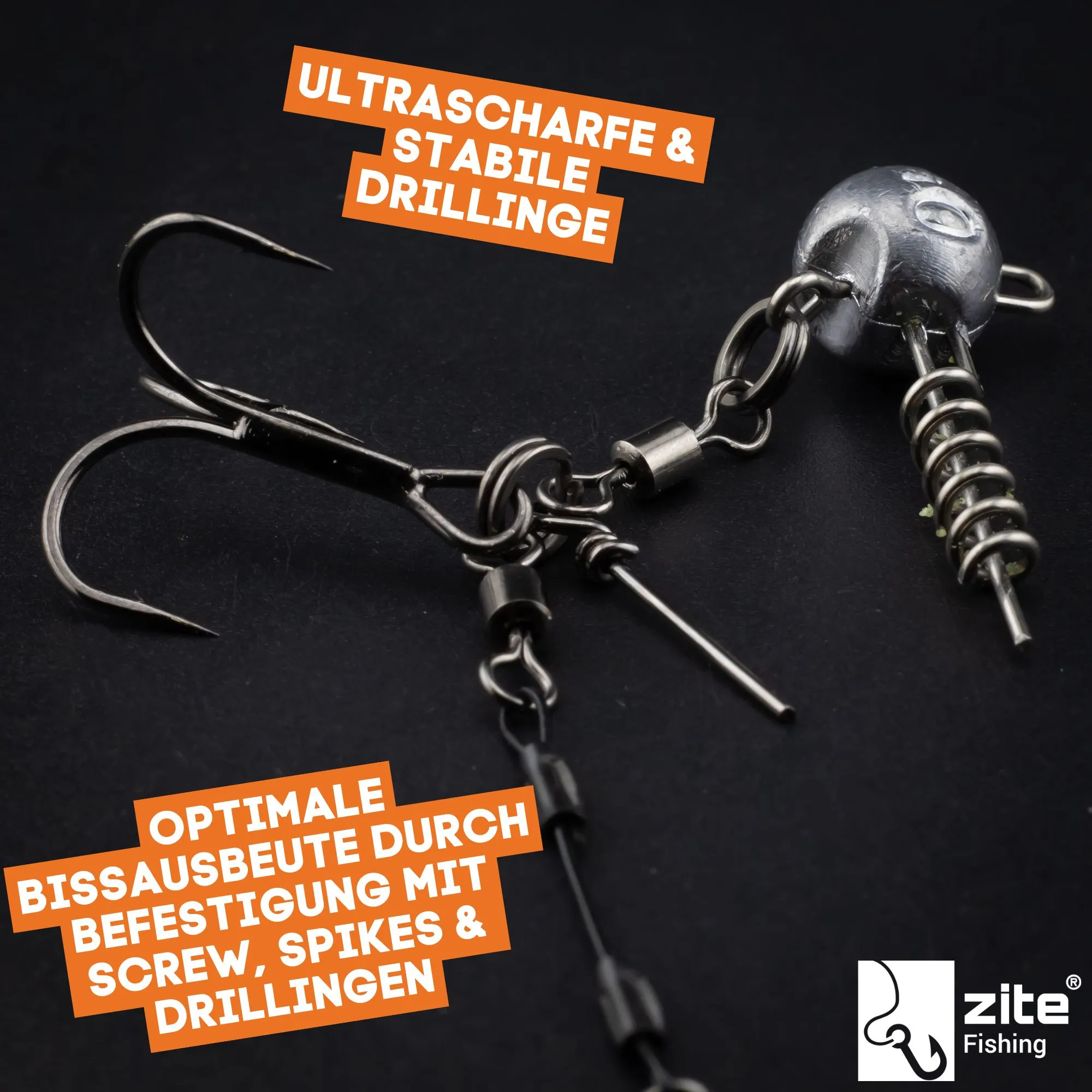 Die zwei ultrascharfen Drillingshaken sorgen für eine zuverlässige Bissverwertung und verhindern Fehlbisse. Ihre hohe Stabilität gewährleistet sicheren Halt auch bei kampfstarken Hechten.