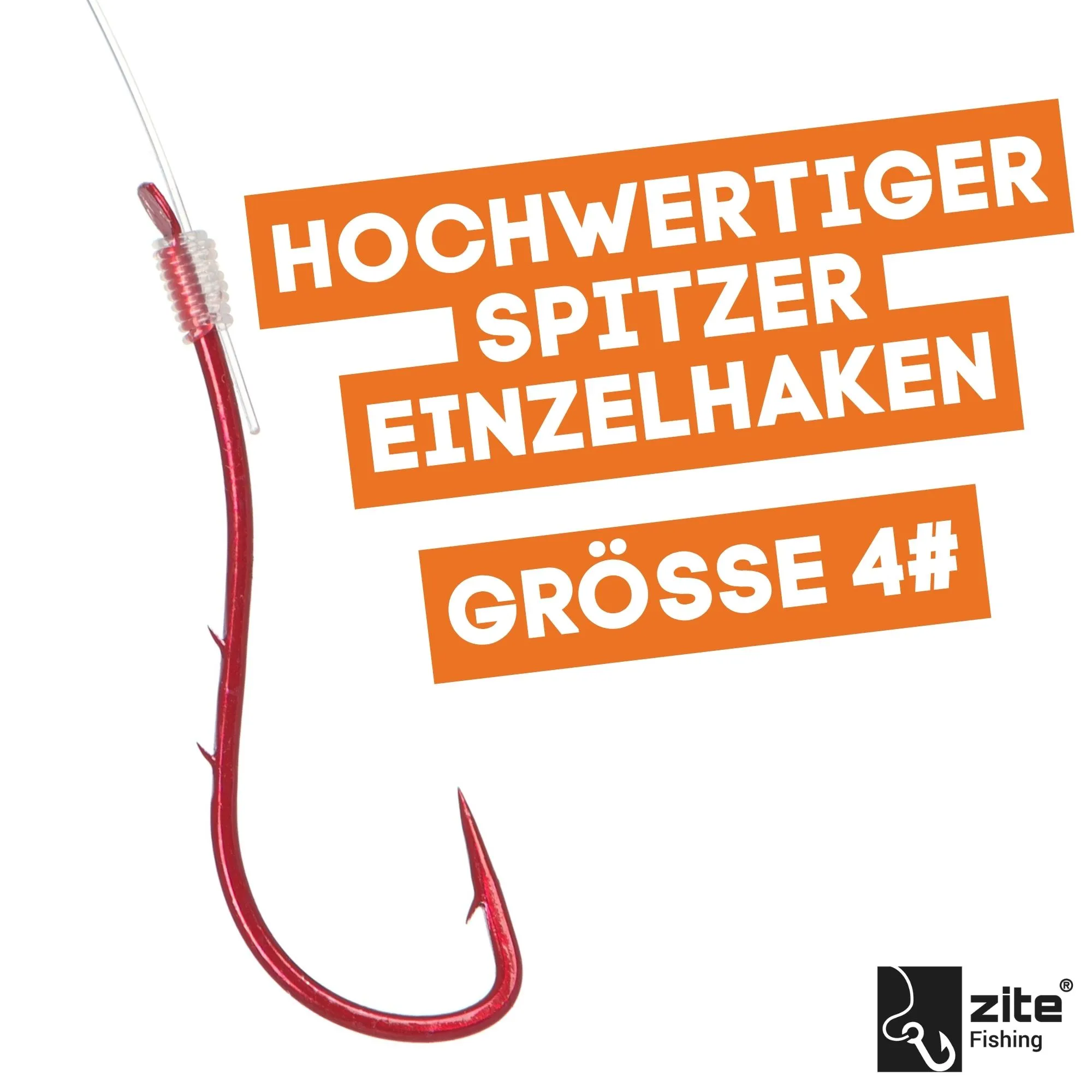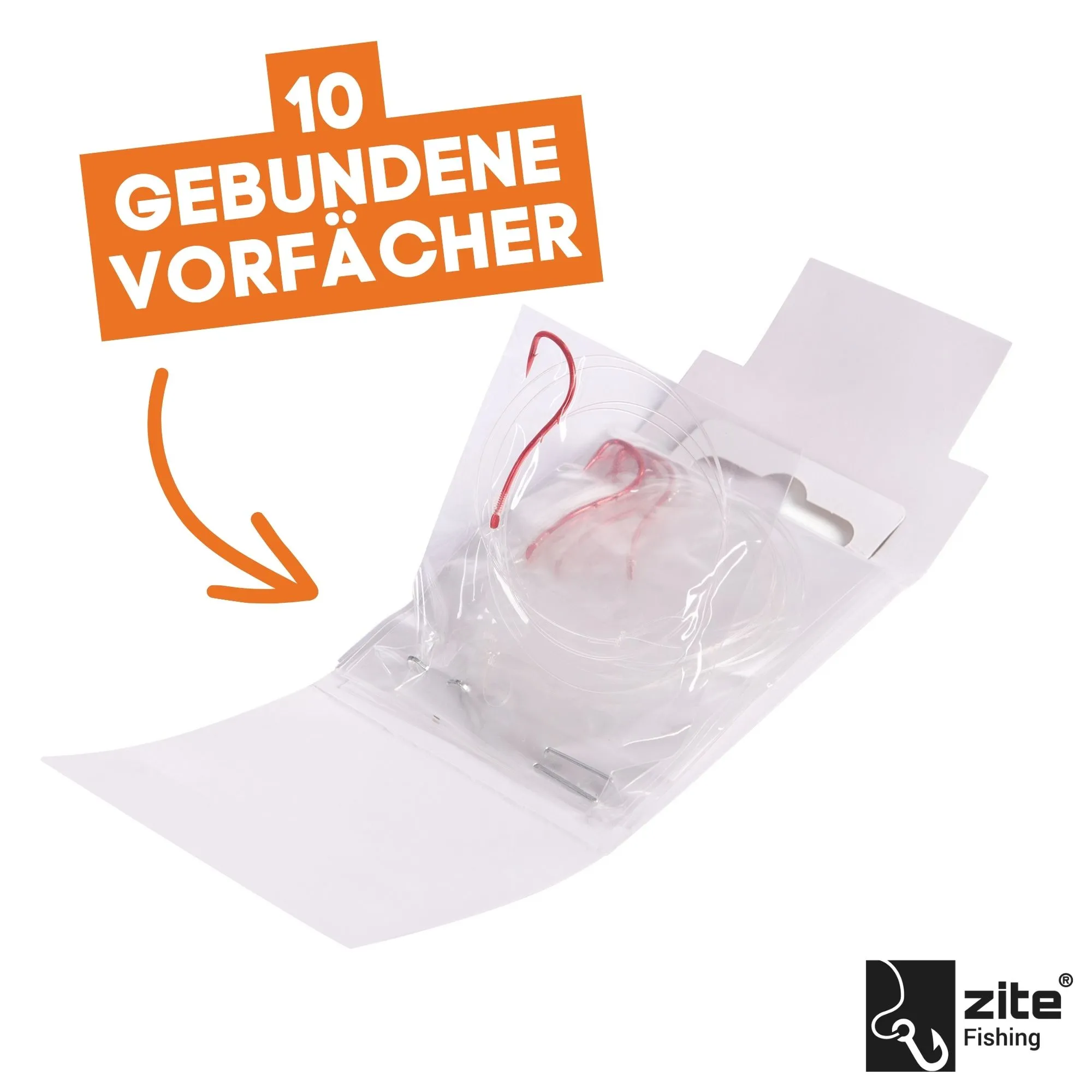 Zehn Premium-Aal-Vorfachhaken #4, fertig gebunden auf 60-cm-Fluorocarbonschnur (Ø 0,35 mm) – dezent, abriebfest und ideal für feiner geführte Naturköder.