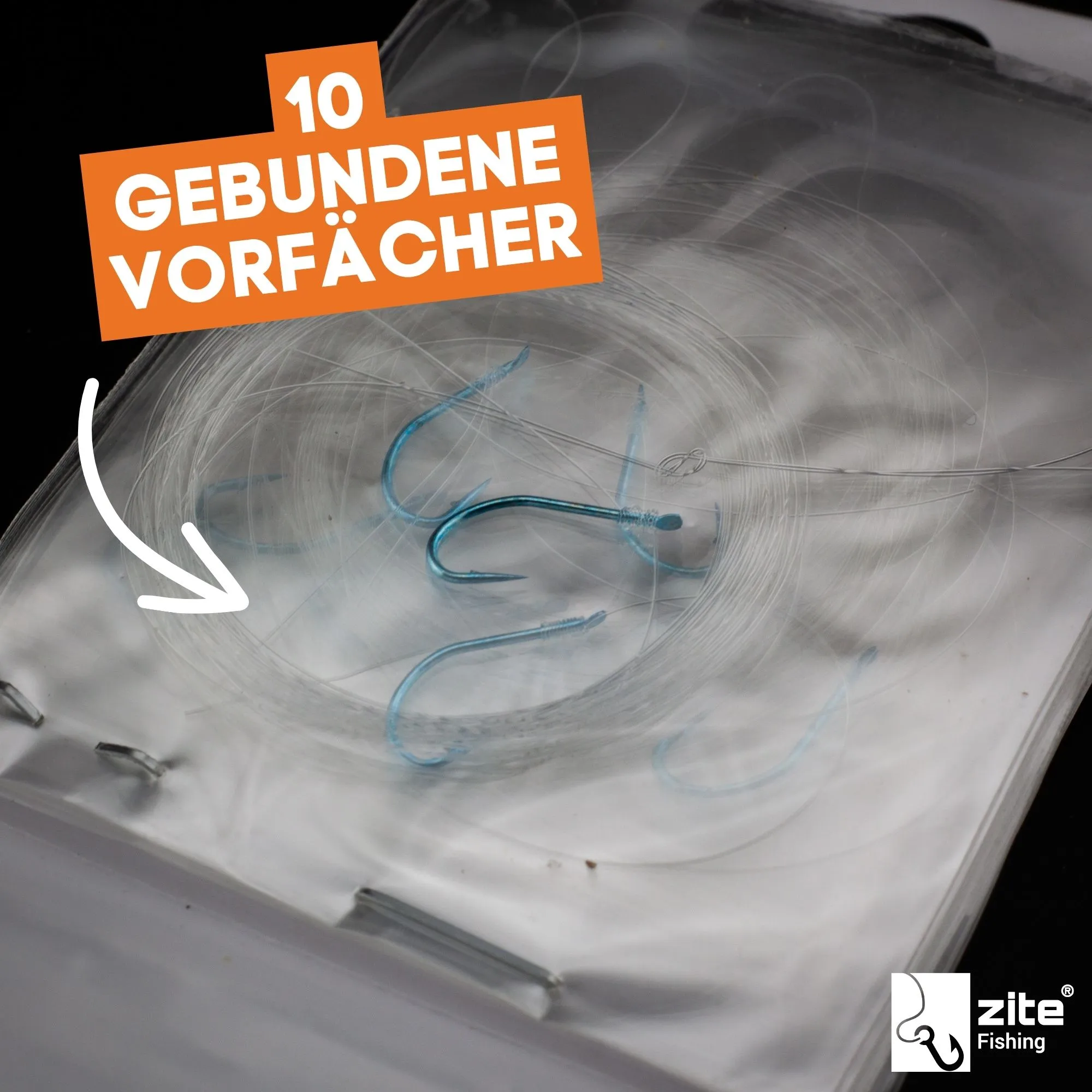 Einheitlicher Vorrat für mehrere Einsätze mit gleichbleibender Qualität. Ordentliche Ablage im Hakenbrief ermöglicht schnellen Austausch und übersichtliches Tackle-Management.