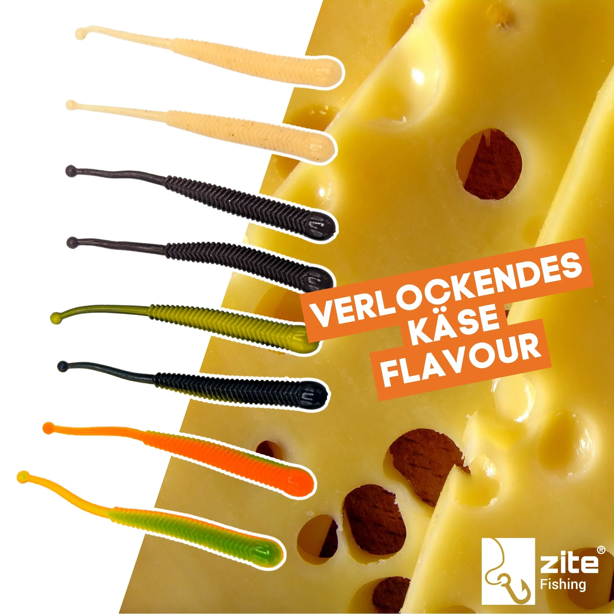 Vielseitiger 8 cm Allround Mix Köder mit vier flexiblen Farbvarianten, weichem Material, starker Aktion und Aromen Knoblauch oder Käse. Made in Germany, phthalatfrei.
