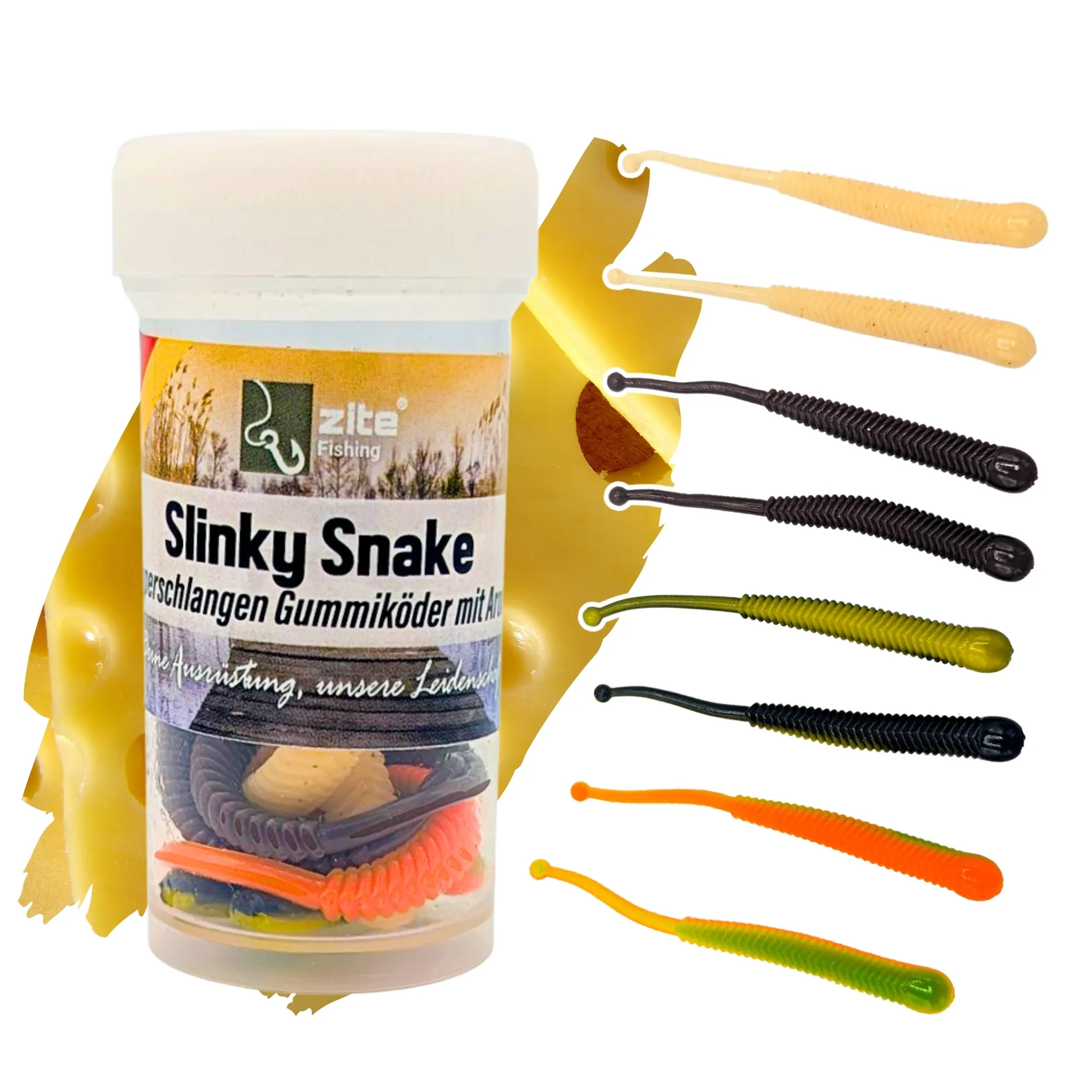 Zite Fishing Slinky Snake Allround Mix Käse 8 cm 8 St. Schlangenförmig Gummi