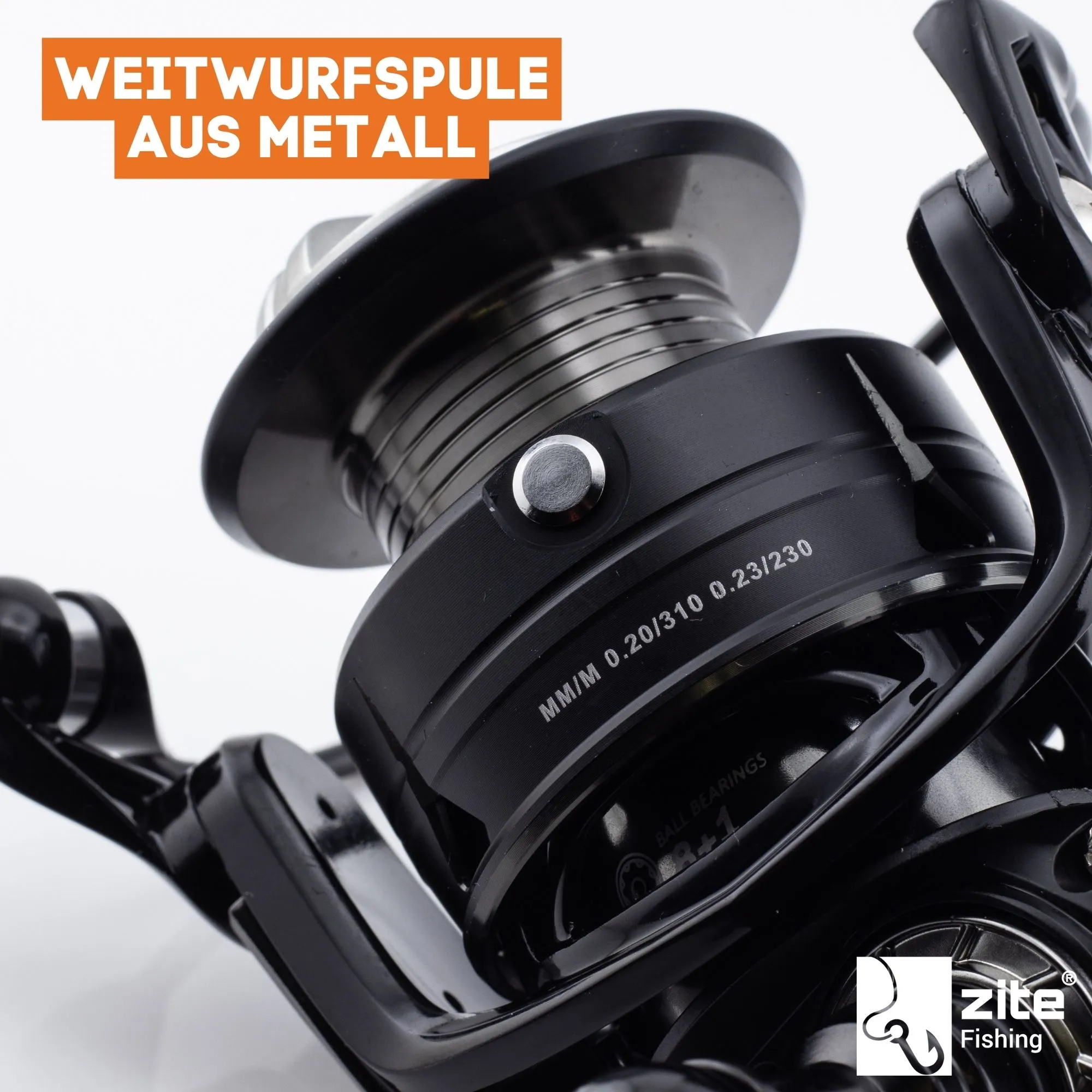 Die Zite Fishing Spinning Reels verfügen über 8+1 Kugellager, die für einen ruhigen und gleichmäßigen Lauf sorgen. Die hochwertige Lagerung ermöglicht geschmeidige Rotation, präzises Einholen und optimale Kontrolle beim Spinnfischen. Dank robuster Verarbeitung bieten die Rollen zuverlässige Performance.