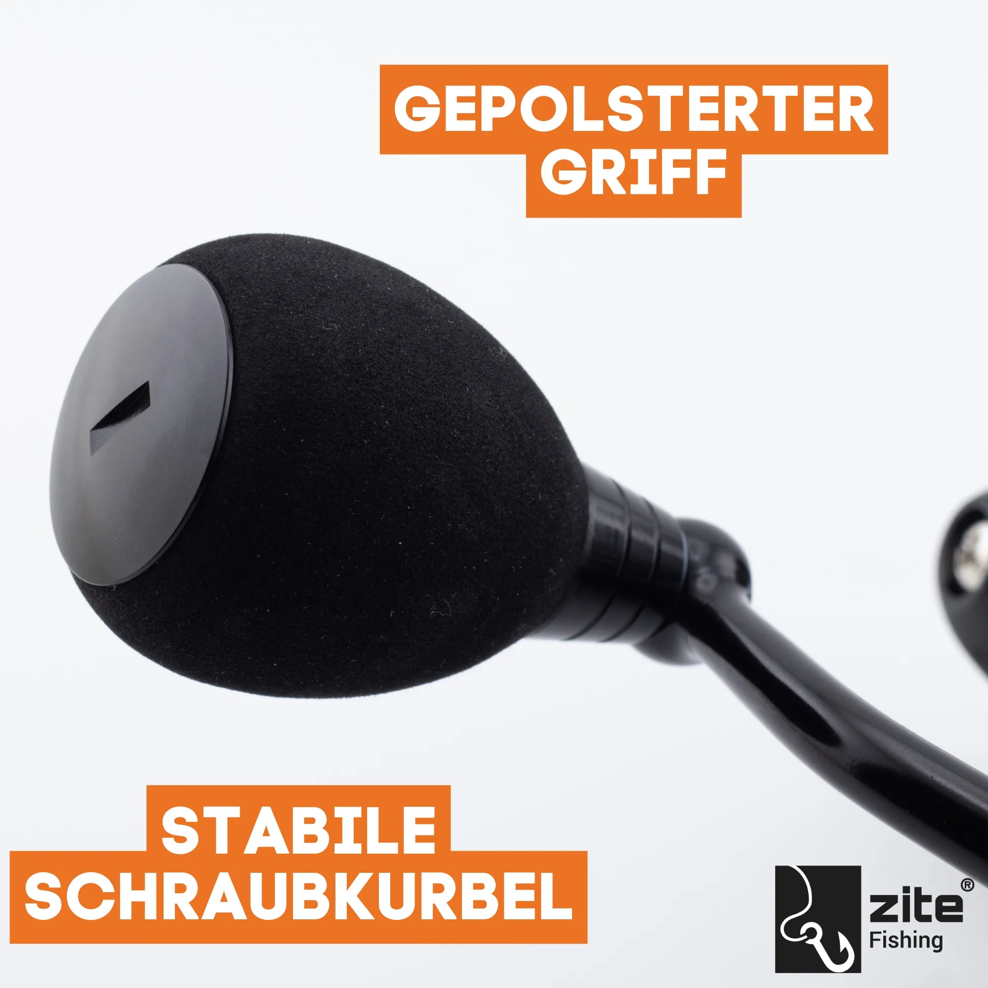 Die Zite Fishing Spinning Reels sind mit einem ergonomischen Soft-Touch Kurbelknauf ausgestattet, der auch bei langen Angelsessions für hohen Komfort sorgt. Er liegt sicher in der Hand, ermöglicht angenehmes Drehen und volle Kontrolle beim Einholen.
