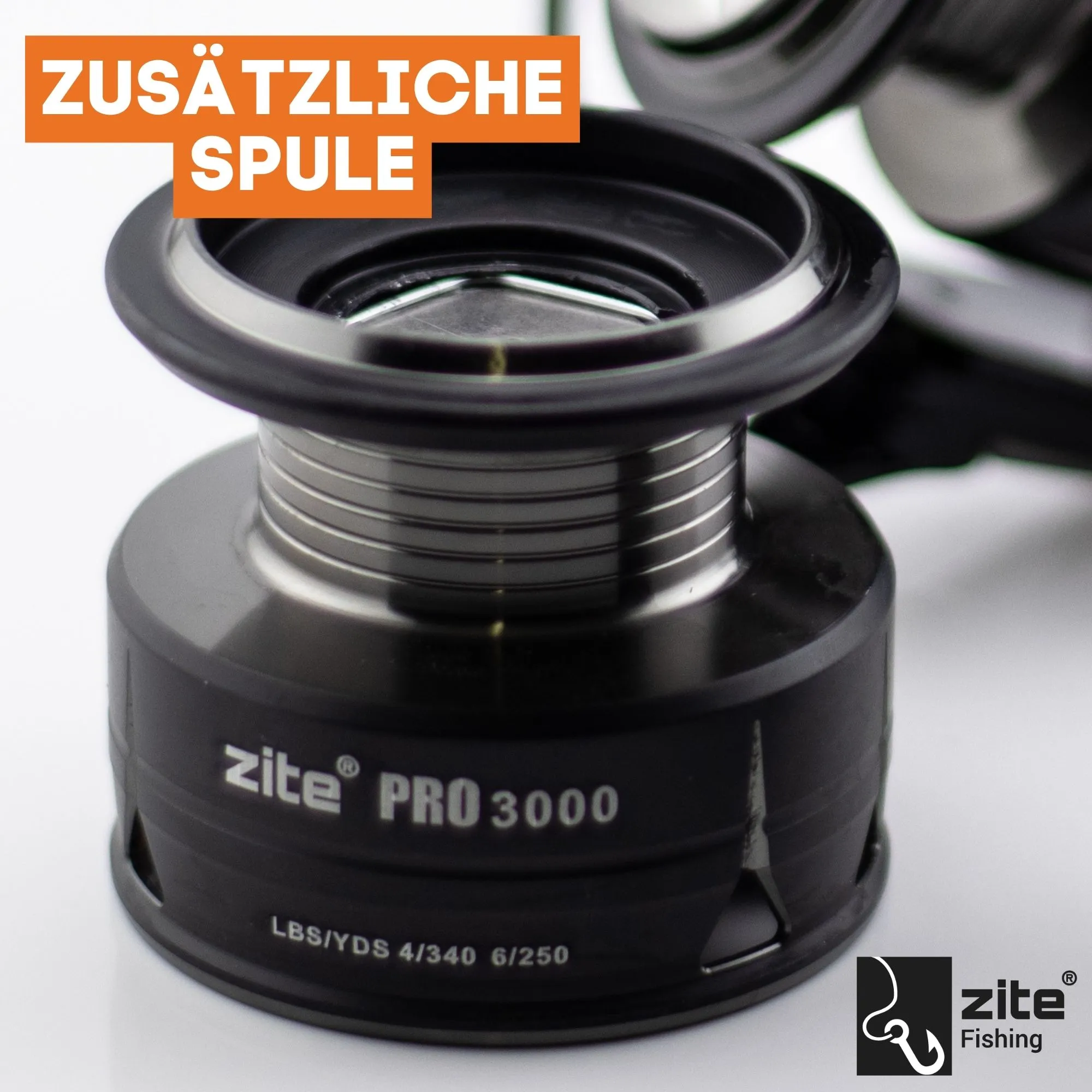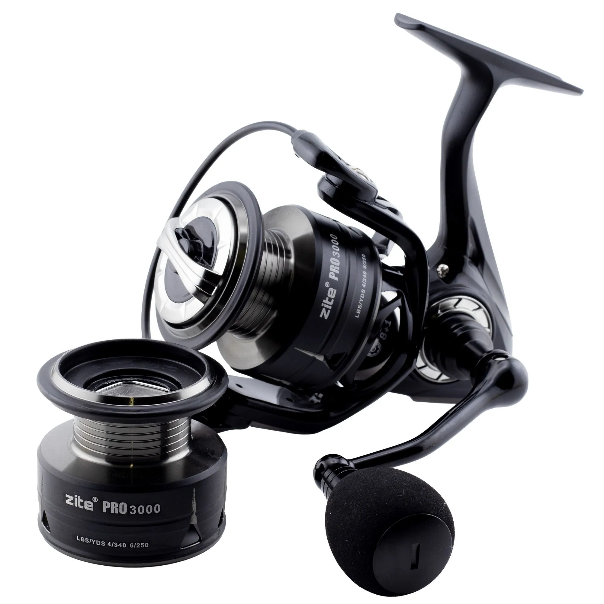 Zite Fishing Spinning Reel Pro 3000 Spinnrolle mit Frontbremse 8+1 2 Aluminiumspulen für Spinnfischen