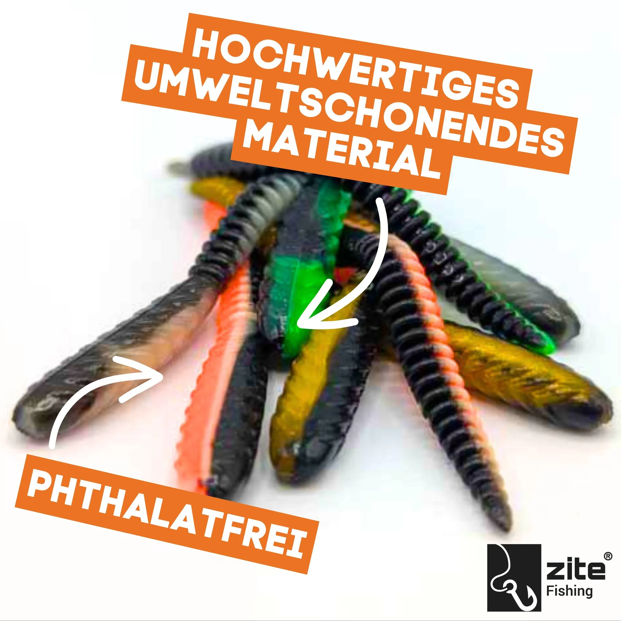 Der Twerky Tailer kombiniert einen stabilen Vorderteil mit einem flexiblen Rippenschwanz. Beide Teile können einzeln oder gemeinsam verwendet werden – perfekt für Cheburashka, Jighaken oder Rotor-Präsentationen.