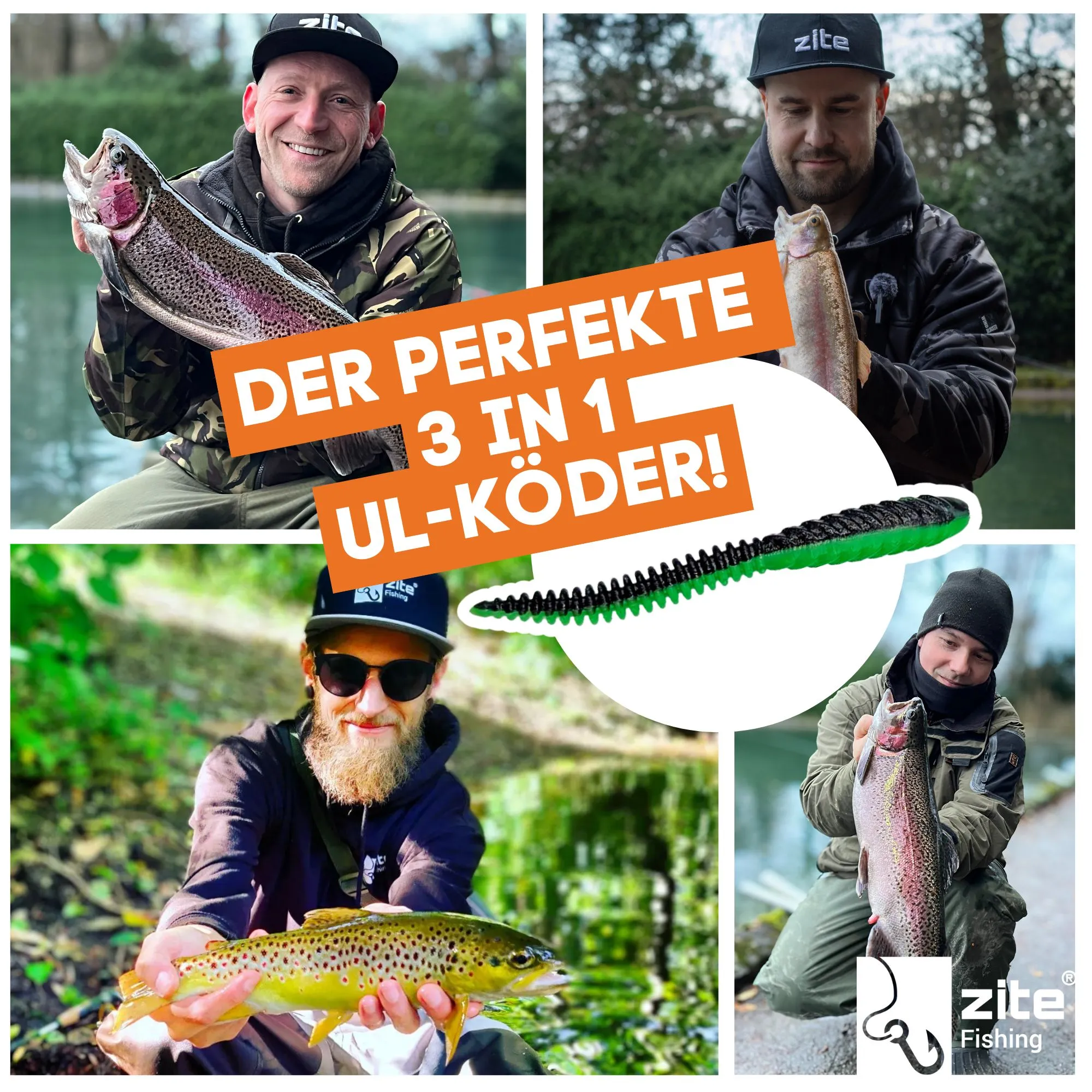Nur das Rippenteil – einfach trennen und solo am kleinen Jighaken präsentieren. Perfekt für UL-Angler, die auf subtile Reize setzen oder wenn die Forellen besonders vorsichtig beißen.