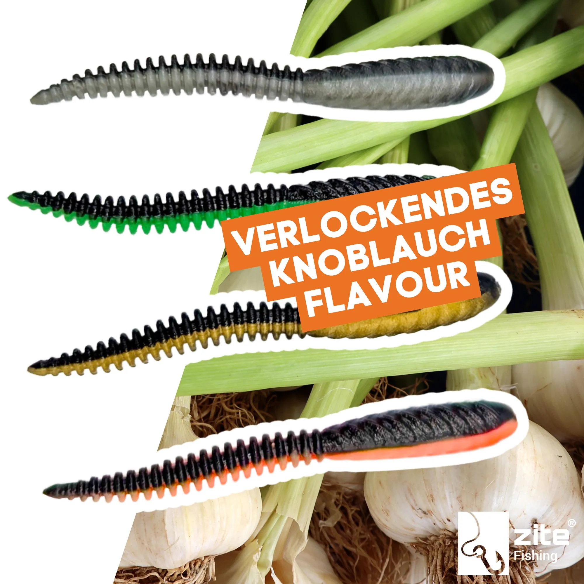 Zite Fishing Twerky Tailer Dark Mix Knoblauch 7 cm 8 STK 3in1 Gummiköder Forelle