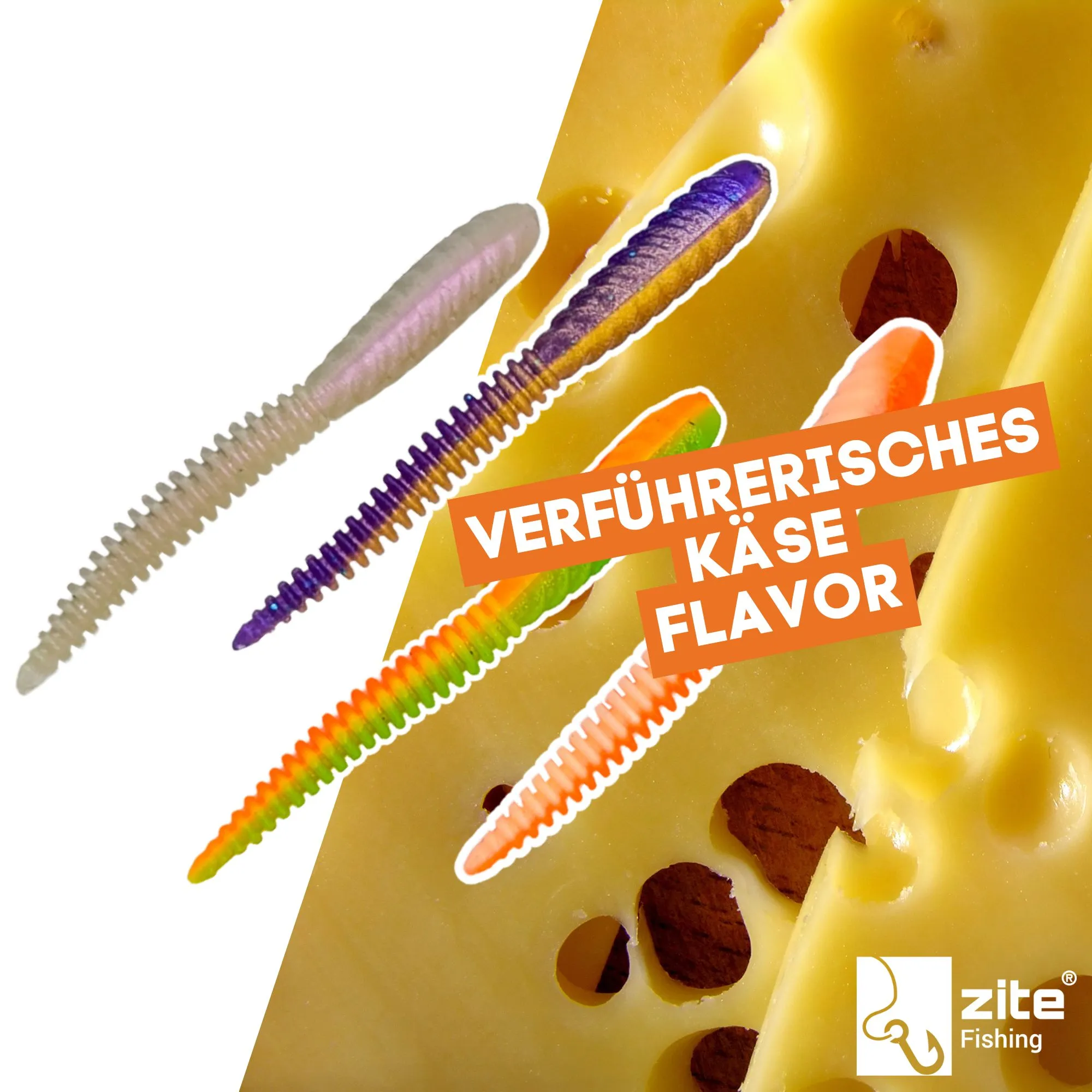 Käse hat sich als Lockstoff im Forellenbereich über Jahre bewährt – und das aus gutem Grund. Der intensive, langanhaltende Geruch spricht die feinen Sinne der Forelle gezielt an und motiviert auch passive Fische zum Biss. Der Twerky Tailer bringt diesen Klassiker direkt ins Gummi – für noch mehr Fangerfolg.